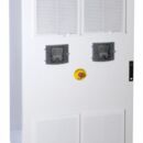 Dezentrales Schranksystem mit kundenspezifischem Steuerungsinterface in Sonderabmessungen und Sonderlackierung.