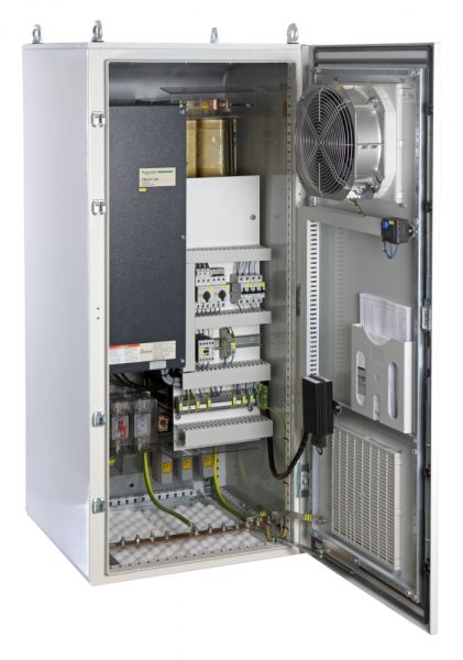 Low-Harmonic Frequenzumrichter (AFE-System) für Bugstrahlruderantriebe im gehobenen Yachtbau. Durch die AFE-Technologie werden die Stromoberwellen sehr stark reduziert, so dass ein THD I < 4% realisiert wird.