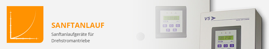 Sanftanlaufgerät für Drehstromantriebe mit einfachem Lastverlauf, Ansteuerung von 1 bzw. 2 Motorphasen mit getrennt einstellbaren Hoch- und Runterlaufeigenschaften