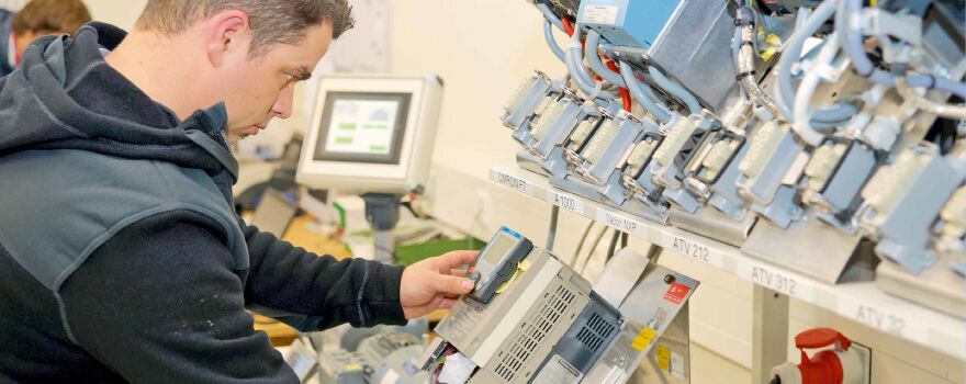 Gehört auch zu unserem Service: In unserem modernen Applikationslabor können alle unsere Umrichter per Steckverbinder an einen Lastprüfstand angeschlossen und unter fast realen Bedingungen getestet werden. So stellen wir ihre Inbetriebnahmesituation im Labor nach und helfen ihrem Servicetechniker am Telefon vor Ort!