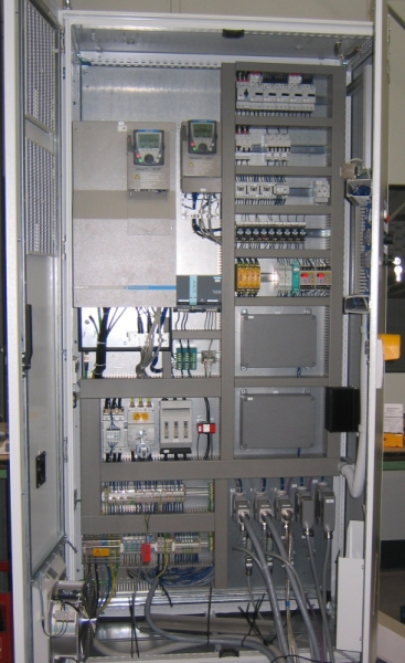 4 x 45kW ATV71-Umrichter mit IMC-DriveController für Doppelhubwerk und 4 x 0,75kW-Umrichter für die Aufspulvorrichtung. 3AC400V-50Hz